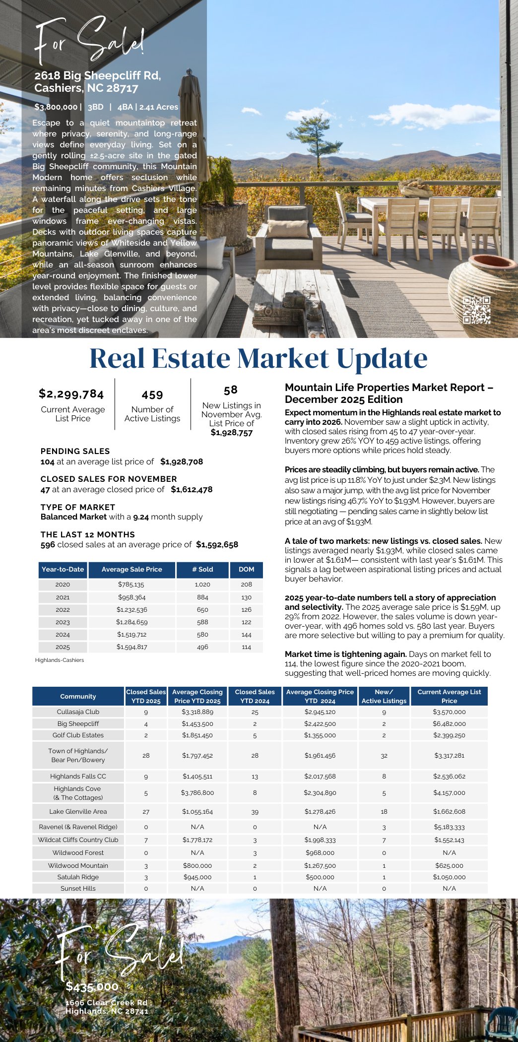 Mountain Life Properties is a top-rated team, with a wealth of knowledge in the Highlands and Cashiers areas. Fill out your information below and one of our team members will get back to you.