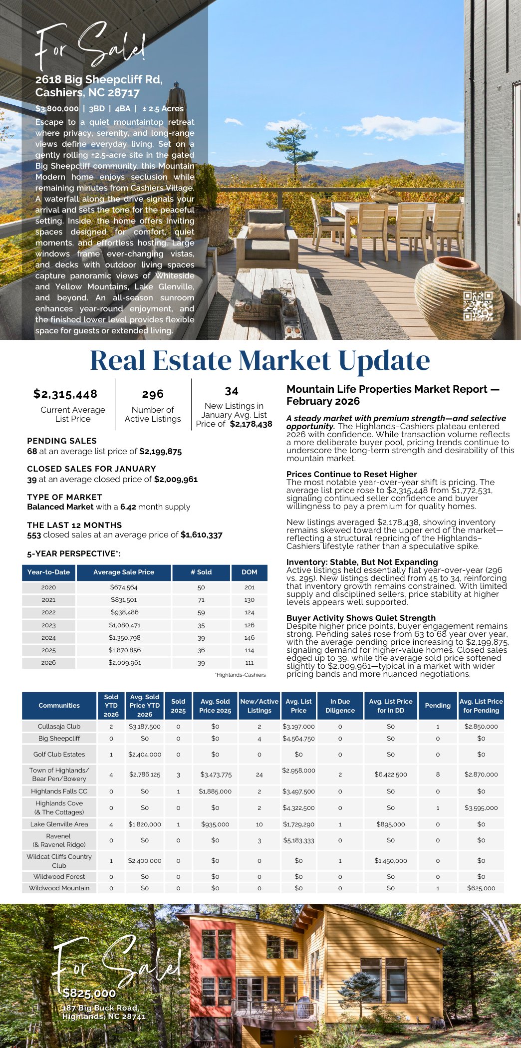 Mountain Life Properties is a top-rated team, with a wealth of knowledge in the Highlands and Cashiers areas. Fill out your information below and one of our team members will get back to you.