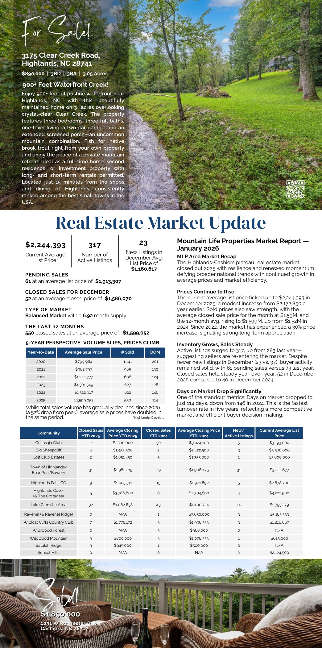 Mountain Life Properties is a top-rated team, with a wealth of knowledge in the Highlands and Cashiers areas. Fill out your information below and one of our team members will get back to you.