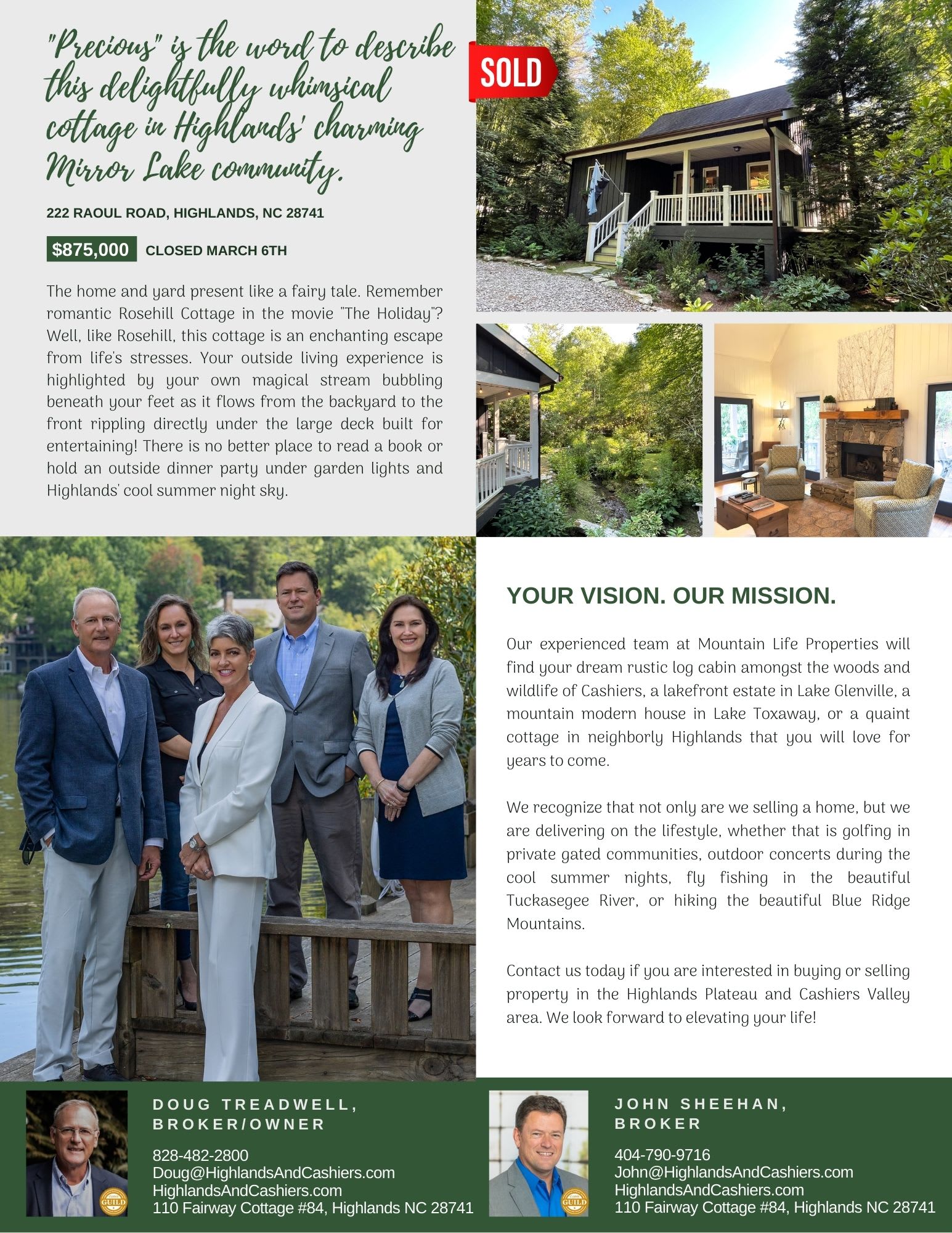 Mountain Life Properties is a top-rated team, with a wealth of knowledge in the Highlands and Cashiers areas. Fill out your information below and one of our team members will get back to you.