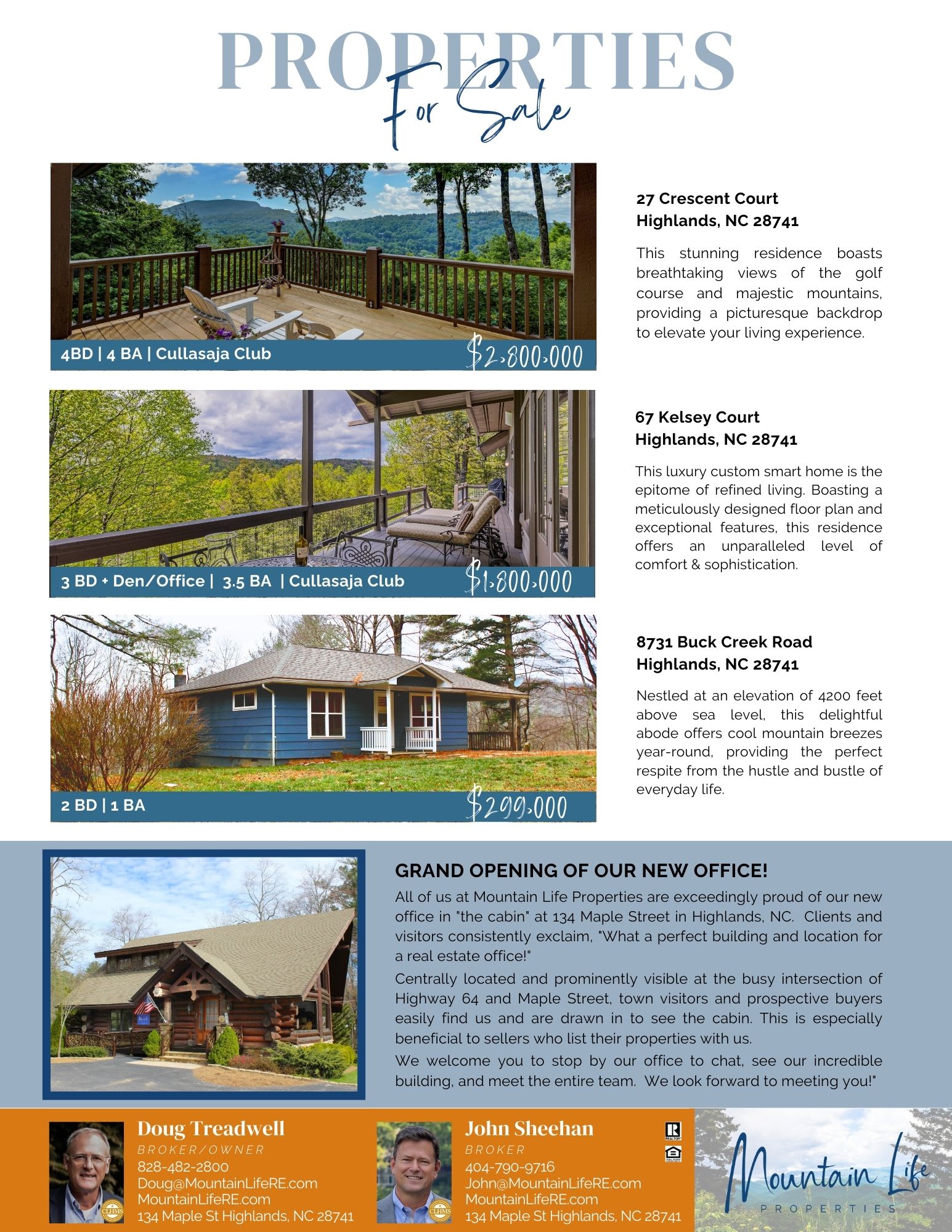 Mountain Life Properties is a top-rated team, with a wealth of knowledge in the Highlands and Cashiers areas. Fill out your information below and one of our team members will get back to you.