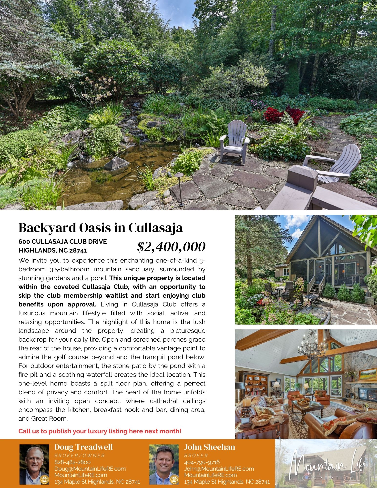 Mountain Life Properties is a top-rated team, with a wealth of knowledge in the Highlands and Cashiers areas. Fill out your information below and one of our team members will get back to you.