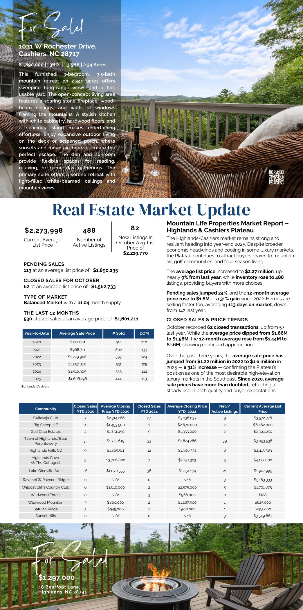Mountain Life Properties is a top-rated team, with a wealth of knowledge in the Highlands and Cashiers areas. Fill out your information below and one of our team members will get back to you.