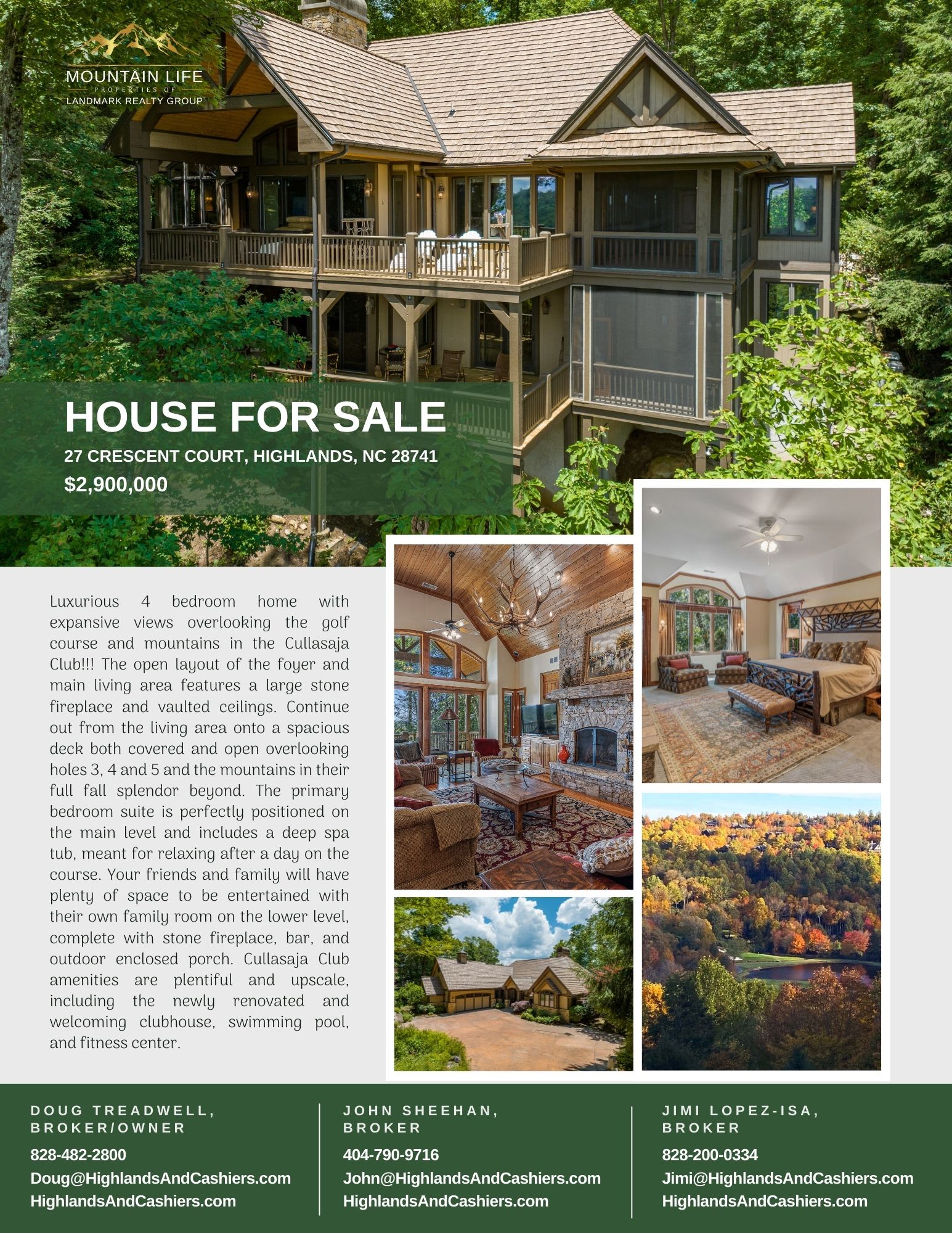 Mountain Life Properties is a top-rated team, with a wealth of knowledge in the Highlands and Cashiers areas. Fill out your information below and one of our team members will get back to you.