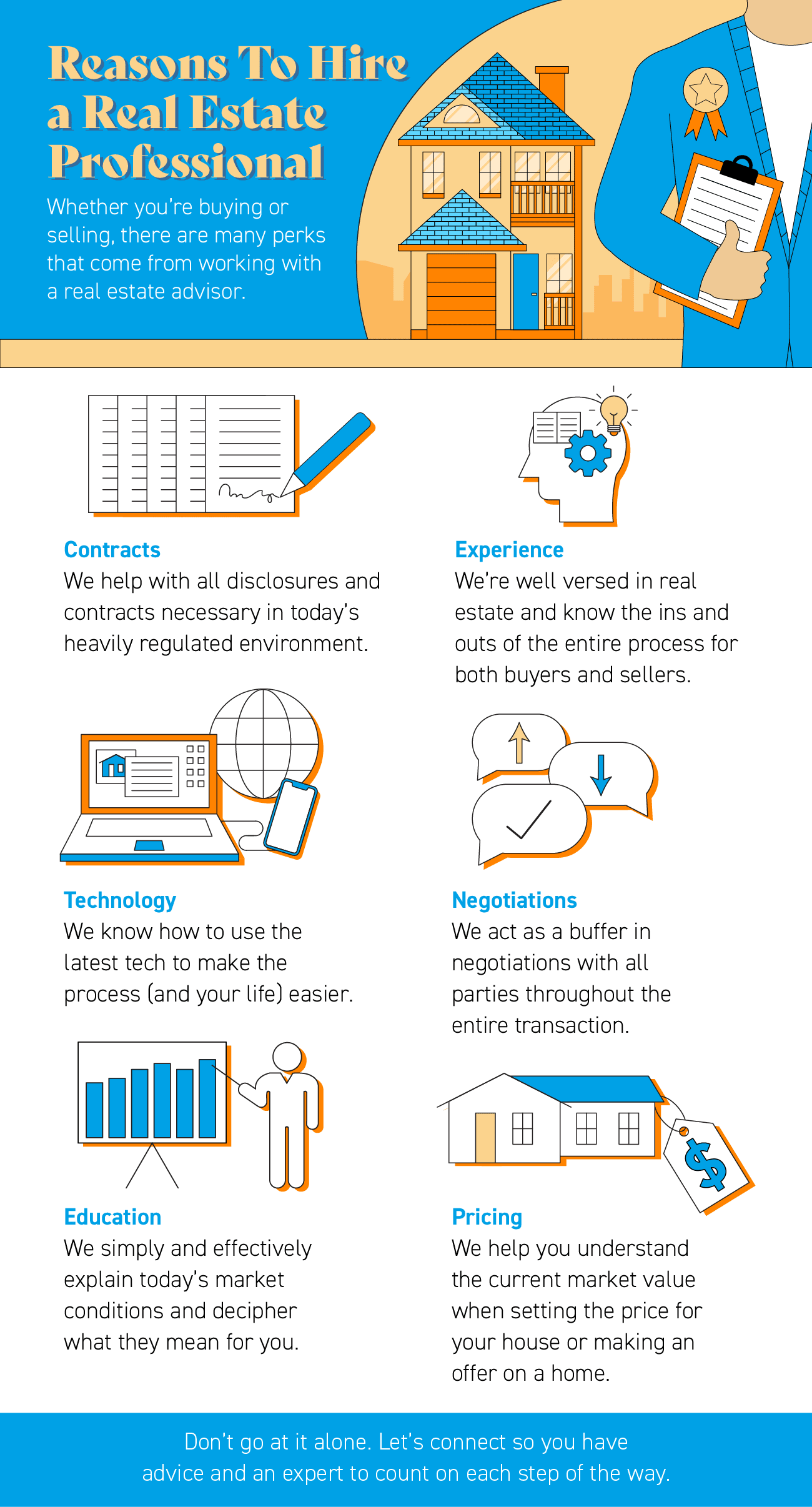 • Don’t go at it alone. Let’s connect today so you have advice and an expert to count on each step of the way.
