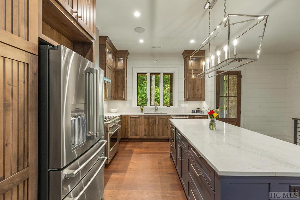 Welcome to your dream home within Highlands' congenial intown neighborhood Shelby Place. This exquisite new construction home by Bock Builders offers the epitome of luxurious living. Featuring a beautifully finished interior, it has been meticulously curated for comfort and style. Enjoy living 1 mile from Highlands' restaurants and boutique shops, while being steps away from the serene beauty of a community meadow and its accompanying tranquility. The home boasts a splendid primary suite on the main level, complemented by three additional bedrooms on the lower level. The spacious great room, kitchen, and dining area seamlessly bond together and lead to an inviting screened porch. Cozy up to one of two fireplaces; either indoor or outdoor and perfect for chilly evenings, sunsets, or a morning coffee awakening. Entertain with ease in the oversized kitchen boasting a stunning island and gourmet appliances by CAFE, including a six-burner gas range. Note the charm of stunningly tiled bathrooms, each adding a touch of sophistication. The home is ideal for hosting wine tastings and intimate gatherings, with entertainment spaces on the two upper floors containing high ceilings that provide room to relax. Ample storage is available to enjoy clutter-free living and an expansive terrace level, two floors below the main, offers an over 1,200 square feet of additional insulated and conditioned space, awaiting your personal touch to finish it out with an office, gym, workshop, game room, studio, and/or extra bedrooms. The owner is including a significant "base finish" to the Terrace Level post closing, if desired, as part of the sale (inquire for details). This unique home features an oversized and sheltering two-car garage, as well as an second spacious deck for guests' use. Embrace the pinnacle of refined living in this unparalleled Highlands intown setting. Don't miss the opportunity to make this exceptional Highlands home your own.